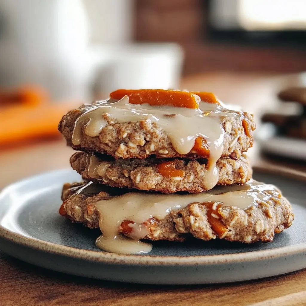 Your Carrot Cake Oatmeal Cookies deserve an appealing presentation! Consider stacking them on a beautiful platter lined with parchment paper for an inviting look at gatherings or parties. Drizzling melted cream cheese frosting over each cookie can mimic traditional carrot cake aesthetics while adding richness. For an extra touch of elegance, garnish with chopped nuts on top or sprinkle some powdered sugar before serving. Pairing these cookies with a warm cup of tea or coffee not only enhances their flavor but also creates a cozy atmosphere perfect for sharing moments with loved ones.