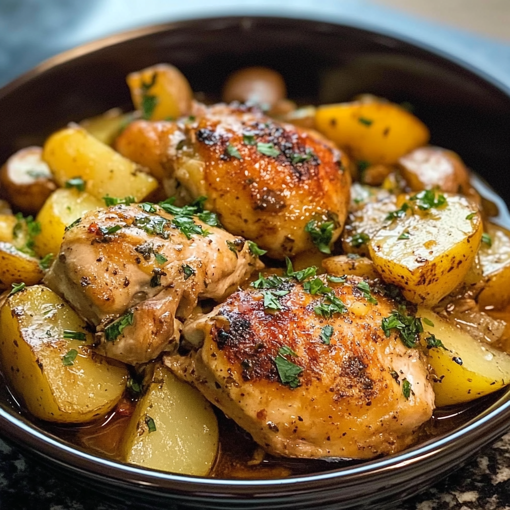 Experience the ultimate comfort food with this Delightful Amazing Crockpot Chicken and Potatoes recipe. Tender chicken thighs are slow-cooked to perfection alongside creamy baby potatoes, infused with aromatic herbs and spices. This hassle-free dish not only fills your home with a heavenly aroma but also delivers a delightful flavor experience that will have your family and friends coming back for seconds. Perfect for cozy dinners or casual gatherings, it’s an unforgettable meal made effortlessly in your crockpot.