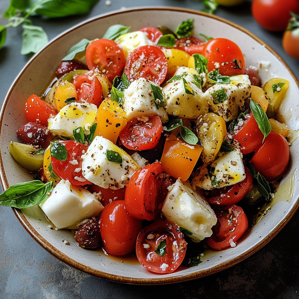 Experience the vibrant flavors of Italy with this Aromatic Antipasto Salad with Marinated Mozzarella. This refreshing salad features a delightful blend of fresh vegetables, creamy mozzarella, and zesty dressing, making it perfect for summer gatherings or a light meal at home. Each bite promises an explosion of colors and textures that will transport your taste buds to sun-drenched Mediterranean coasts. Gather your friends and family around this beautiful dish filled with love and laughter.