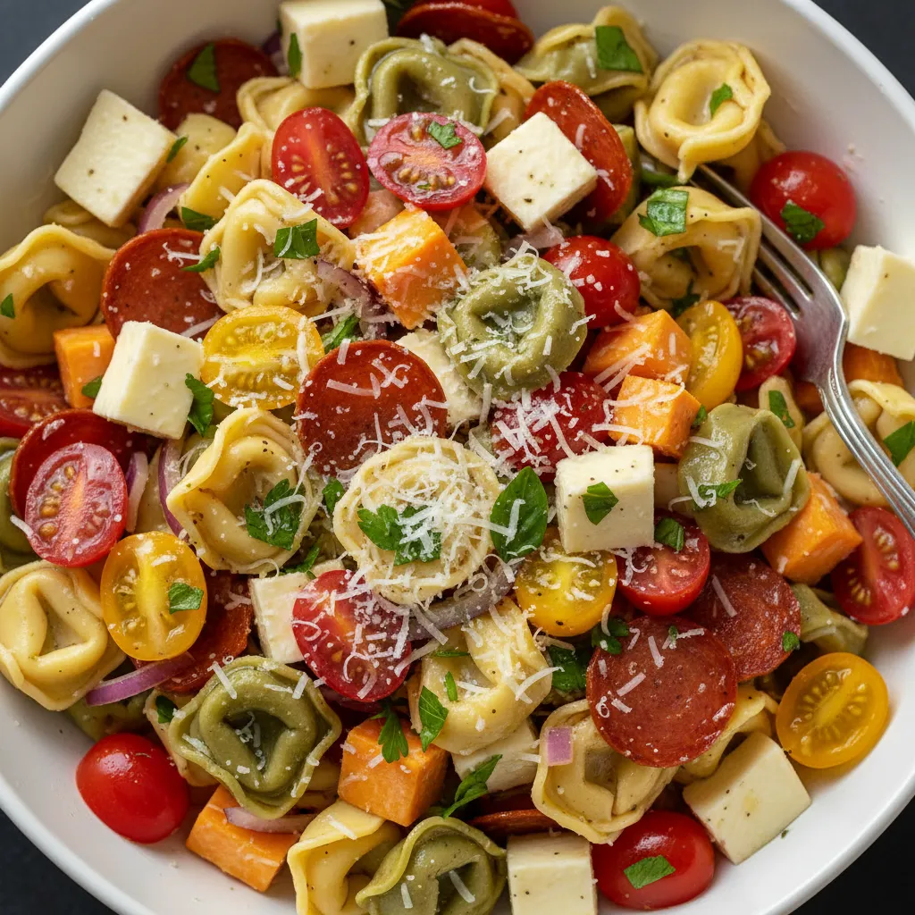 A bright, fresh Italian tortellini salad that balances crisp pasta, sweet tomatoes, creamy mozzarella, and a zesty vinaigrette. Perfect for quick lunches or light dinners.