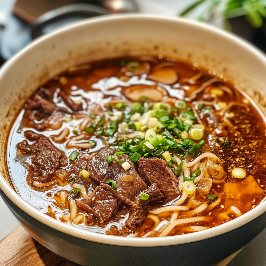 Kimchi Beef Noodle Soup Golden is not only delicious but also packed with nutrients. The beef provides protein and iron, while kimchi offers probiotics and vitamins. This dish is relatively low in calories if you control portion sizes. To enhance its health benefits, consider using whole-grain noodles or adding more vegetables.