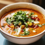 Warm your soul with this Tempting Amazing Vegetarian Tortilla Soup, brimming with vibrant vegetables and aromatic spices. Each spoonful offers a rich broth that nourishes while tantalizing your taste buds. Topped with crispy tortilla strips and fresh lime juice, this soup is perfect for cozy dinners or weeknight meals. Easy to prepare and bursting with flavor, it promises to be a family favorite!