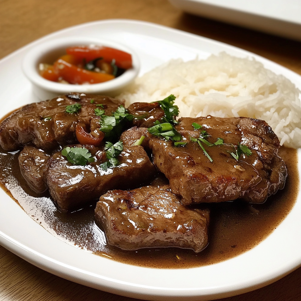 Steamed Jasmine Rice: The fluffy texture of jasmine rice complements the savory richness of the bistek beautifully. It absorbs the flavorful sauce, making every bite a delight.