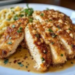 - Dredge the chicken: Dip each seasoned chicken breast into the mixture, pressing gently to adhere the crust evenly on top.